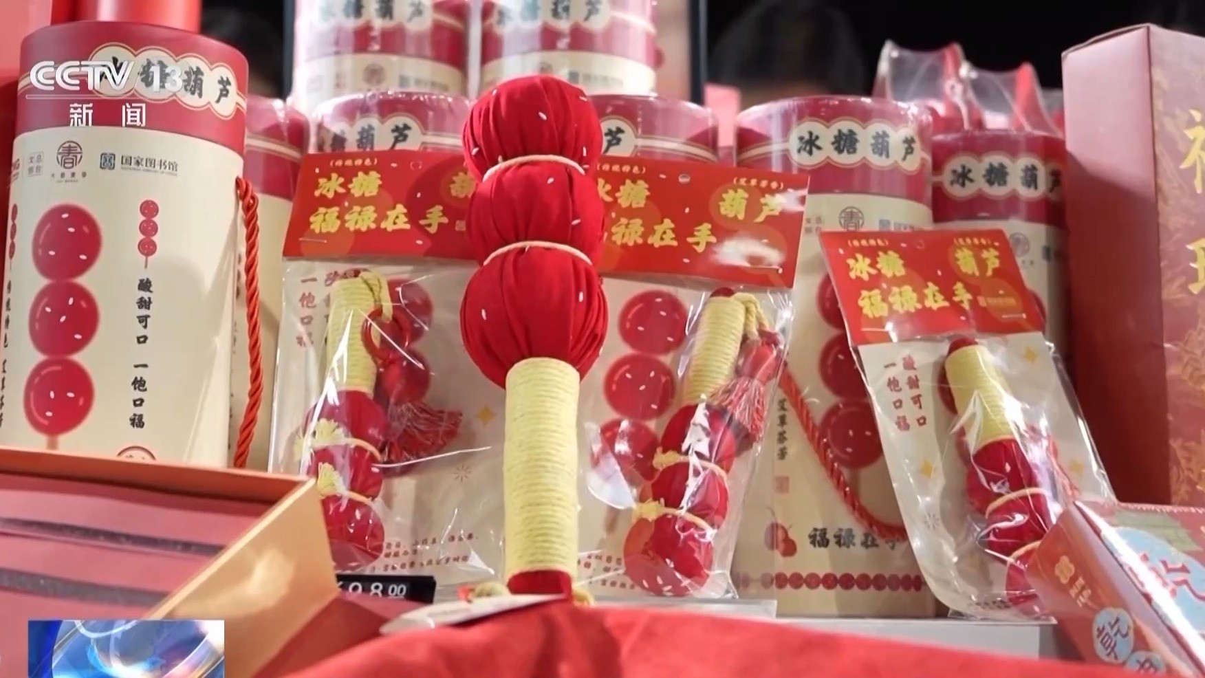 此次国图还带来了和总台央视《大春晚季》联名推出的文创“糖葫芦艾草锤”。